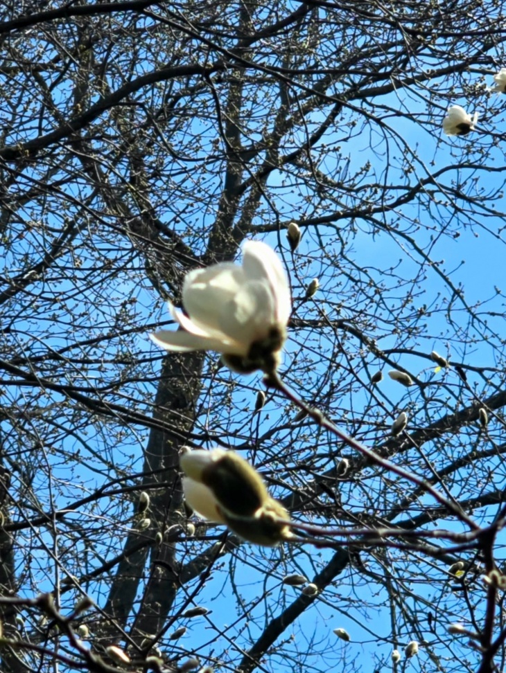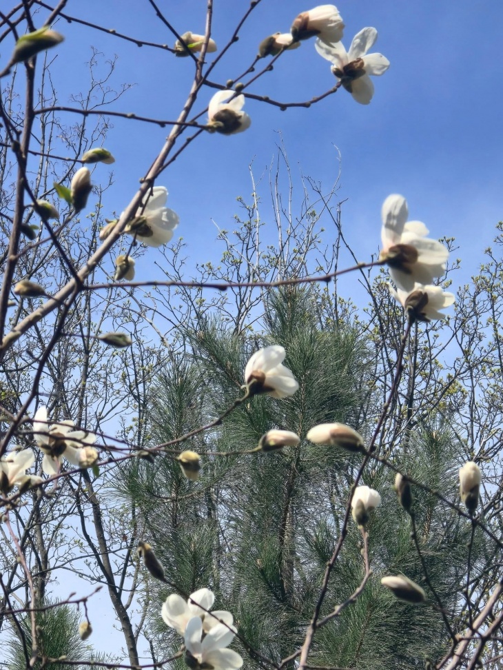 В Центральному парку розквітнула біла магнолія! Перші квітки з'явилися на деревцях в Ретро парку. Тож днями очікуємо, що і рослини навколо Озера розкриють білі, рожеві та фіолетові бутони.